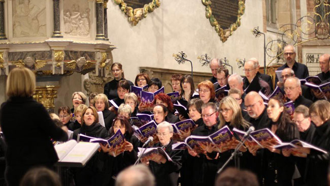 Annemarie, 65, evangelisch: "Schon lange hatte ich den Wunsch, mal in einem großen Chor mitzusingen. Frau Sturm kenne ich als Chorleiterin eines Vereinschores, und als ich von diesem Projekt hörte, wollte ich gerne mit machen, denn ich singe am liebsten Kirchenchorliteratur."
